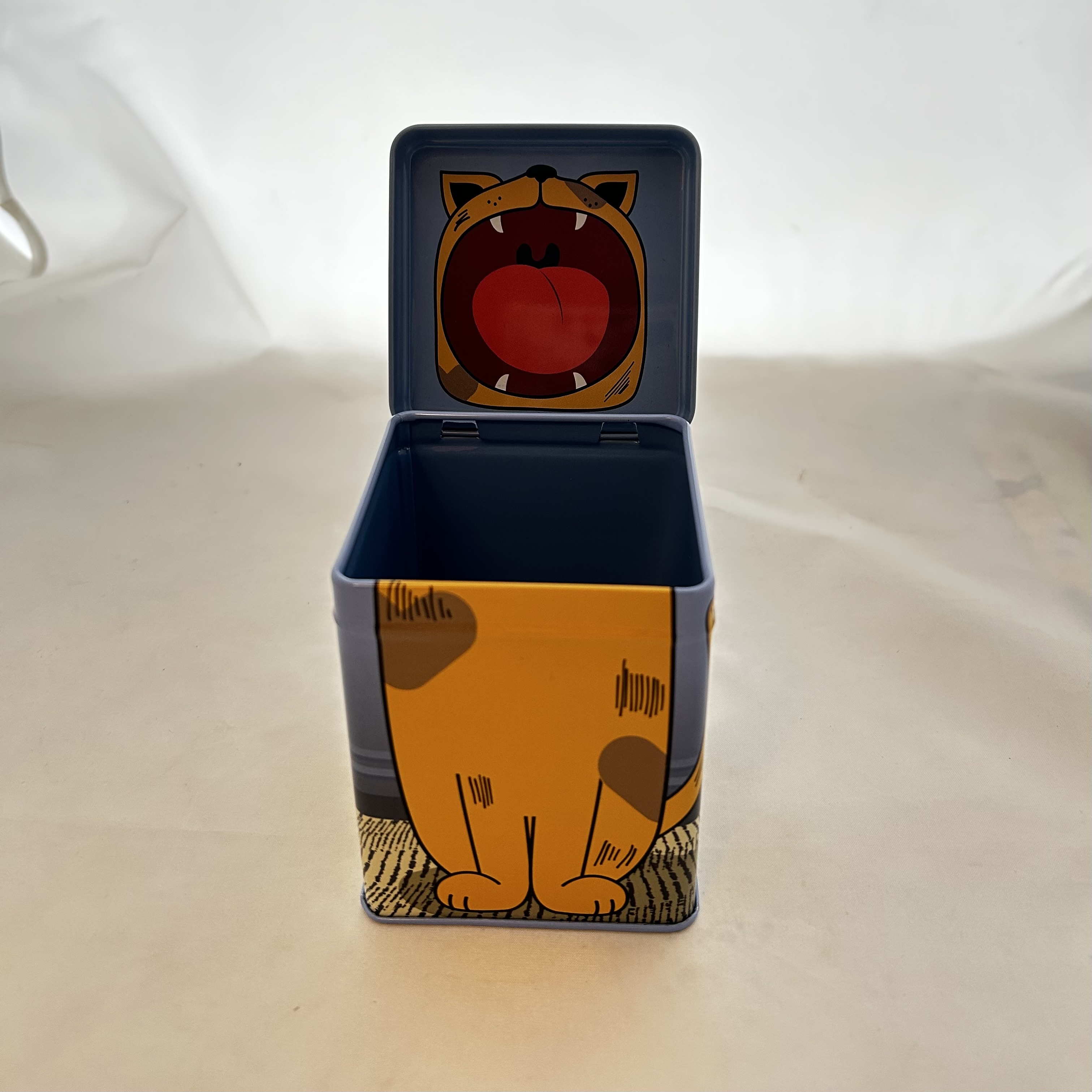 Meow! Diese niedliche blaue Teedose hat es im wahrsten Sinne des Wortes in sich. Sobald Sie den Deckel dieser hochwertigen Weißblechdose öffnen, zeigt die putzige Katze ihre Zähne – fast so, als wolle sie Ihren kostbaren Tee vor neugierigen Langfingern beschützen. Angelockt vom herrlichen Aroma Ihrer Lieblingsmischung wird dieser dekorative Stubentiger schnell zum Highlight in Ihrer Küche.