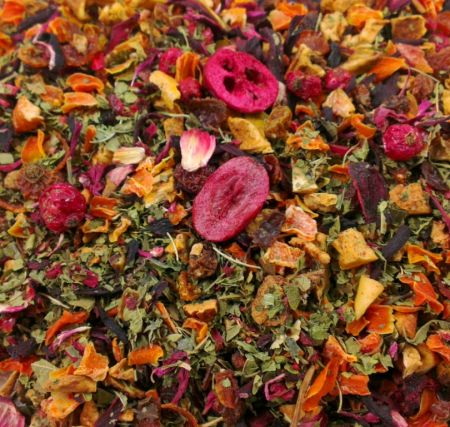 Milde Früchteteemischung mit Sanddorn, Preiselbeeren und natürlichem Aroma.