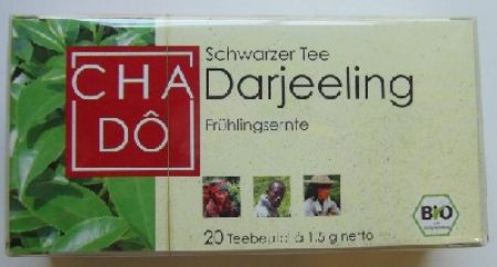 Cha Dô, Bio Schwarztee aus Nordintien Darjeeling . Helle feine Tasse. 20 Beutel je 1,5g.